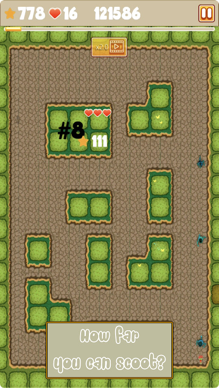Veeg omhoog/omlaag, links/rechts om obstakels onderweg te vermijden!