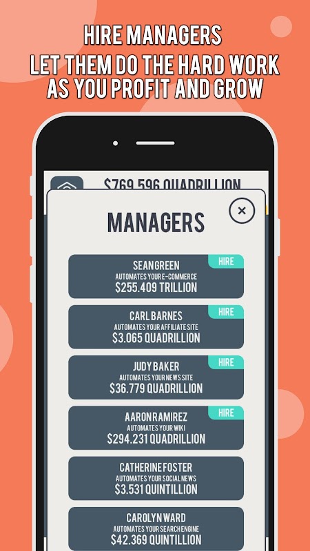 Begin met genoeg geld om uw eerste domein kopen voor uw persoonlijke website en het opbouwen van een enorme portfolio van 25 websites! Upgrade hen, krijgen de winst en snelheid multipliers, het huren van managers om ze te draaien en leun achterover en aanrichten van de beloningen!