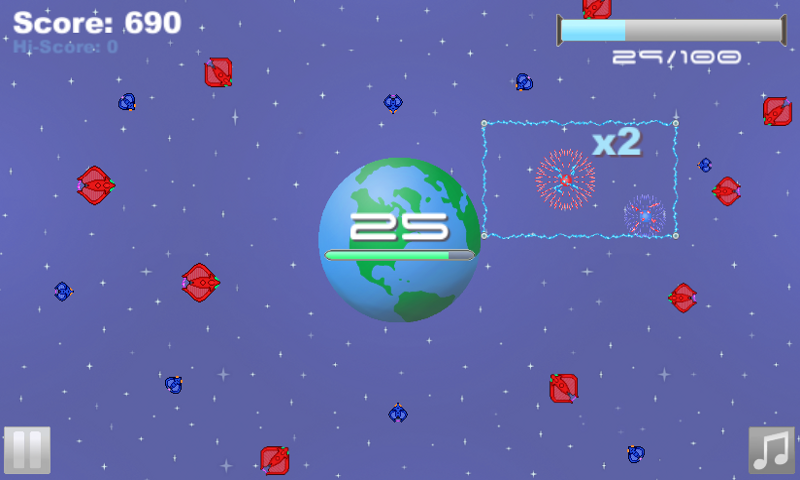 De Aarde wordt aangevallen veel deze dagen. Aliens, Kometen, Cyberspace schepen en Unidentified Flying Blobs zijn teistert onze baan! Als er genoeg van die dingen smakken in de planeet we klaar voor! Het is aan jou om ze te vernietigen met felle elektrische woede!