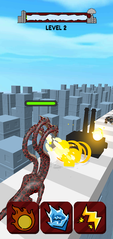 Choose to breath fire, ice or lightning to demolish whatever is on your way!