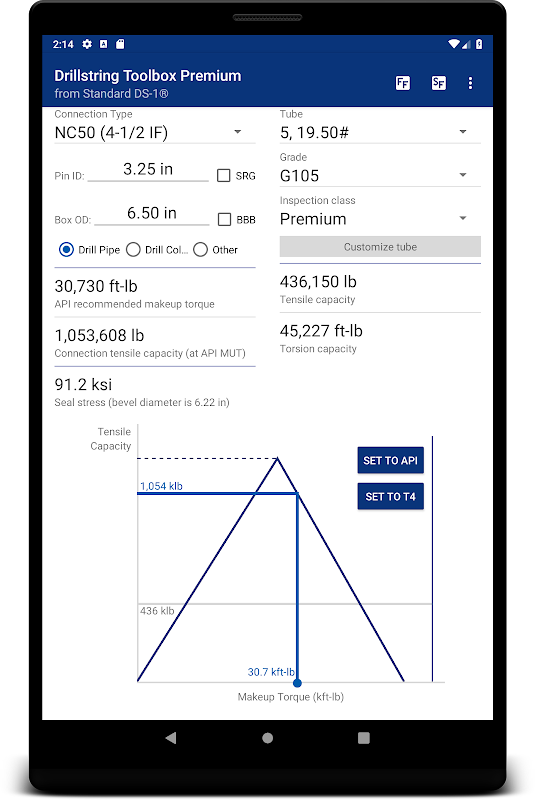 Dezelfde sympathieke technici achter de DS-1-standaard hebben deze Drillstring Toolbox Premium gemaakt! Het is een geavanceerde rekenmachine die alles doet wat de gratis Drillstring Toolbox doet en nog veel meer! Hiermee kunt u vinden: