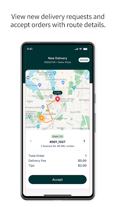Multi-Stop Optimalisatie: Bij het verwerken van meerdere bestellingen stelt de app automatisch de meest efficiënte route voor, zodat u de reistijd minimaliseert en de productiviteit maximaliseert.
