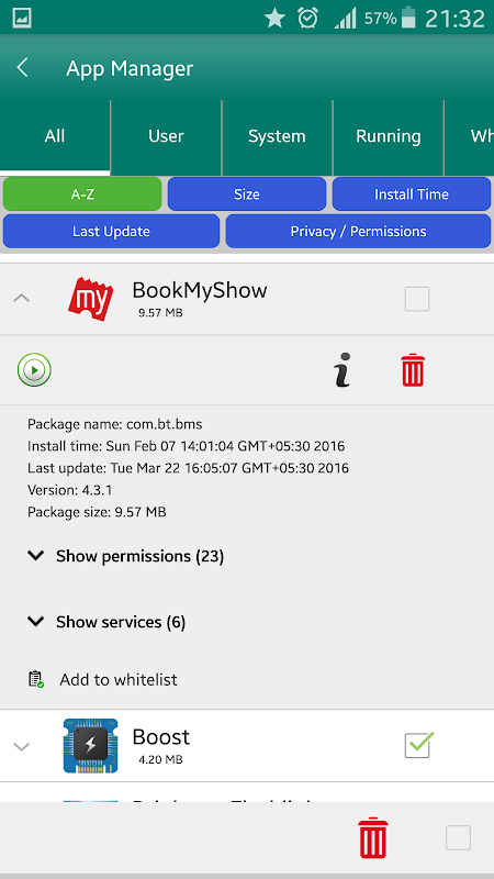 With many apps in your phone, the need of app manager in your phone becomes essential. Get each & every detail associated with any app, in the way you want & manage them be knowing its permissions, services, size, etc. Also get many useful information of apps associated.