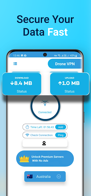 • Gegevensbescherming: Drone VPN beschermt uw gegevens tegen hackers en pottenkijkers.