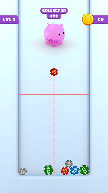 Welkom in de boeiende wereld van "Drop Coin!", waar strategie en spanning samenkomen in dit puzzelspel. Stel je een scherm voor dat gevuld is met een waterval van munten, elk variërend in grootte en kleur, die verschillende coupures vertegenwoordigen, van 1 tot maar liefst 500.