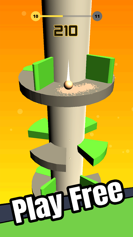 Drop Stack Ball: Tower Crush spelen is zo eenvoudig en ook eindeloos. Je legt je vinger op het scherm en beweegt deze van links naar rechts om het helixplatform te draaien. Je hoeft de bal die op het scherm staat niet te verplaatsen, alleen de platforms die rond een centrale paal draaien.