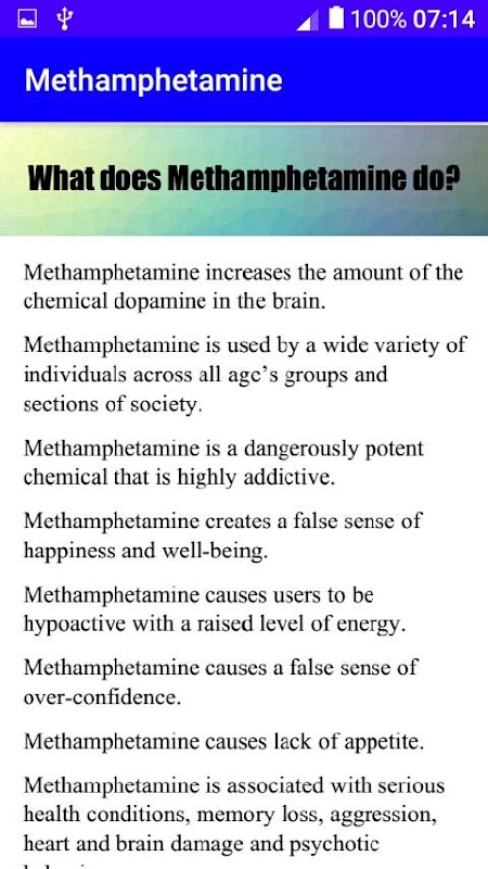 Deze app is ontworpen om mensen te informeren en te informeren over Methamfetamine.