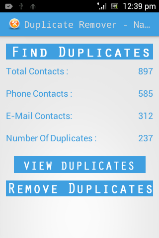 Een schone eenvoudige app om te gaan met uw Duplicate Remover Contacten Problemen en Best Contact Manager. Helpt bij het identificeren, verwijderen en samenvoegen contacten. Het heeft meerdere eigenschappen zoals hieronder: