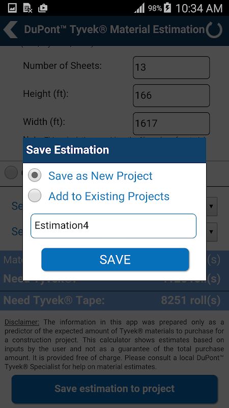 DuPont™ Tyvek® Weatherization Calculator helps users determine material quantities of Tyvek® weather barrier wrap, and flashing system products. Estimate how many rolls of material to purchase after entrering dimensions of building size and penetrations. Evaulate more accurately with the ability to choose construction use and style. Next, share calculations easily by saving and sending PDF files.