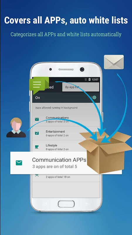 Helps boost foreground APP speed by restricting background Apps. Works only when there is a foreground APP.