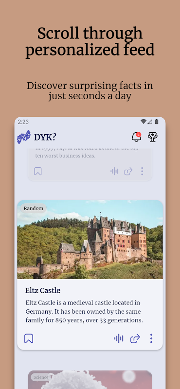 Each fact is paired with a visual, making it easier to remember. Studies show that visual learning helps information stay in your long-term memory — so what you learn with DYK? actually lasts.