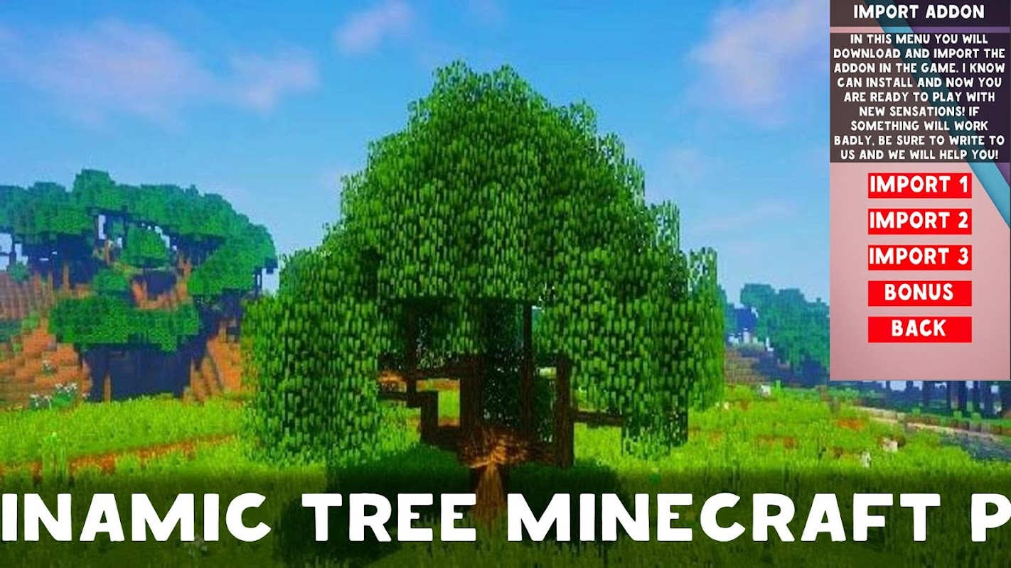 Dynamic Tree mod for Minecraft PE is an addon that adds different rare Dynamic Tree for Minecraft PE. Install Dynamic Tree mod for Minecraft Pocket Edition, rejoice and let all other players envy your Dynamic Tree