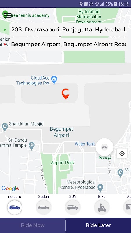 - Set your pickup location(e.g: home, office, or your current location). See available type of cabs in your location & choose which type of cab you want.
