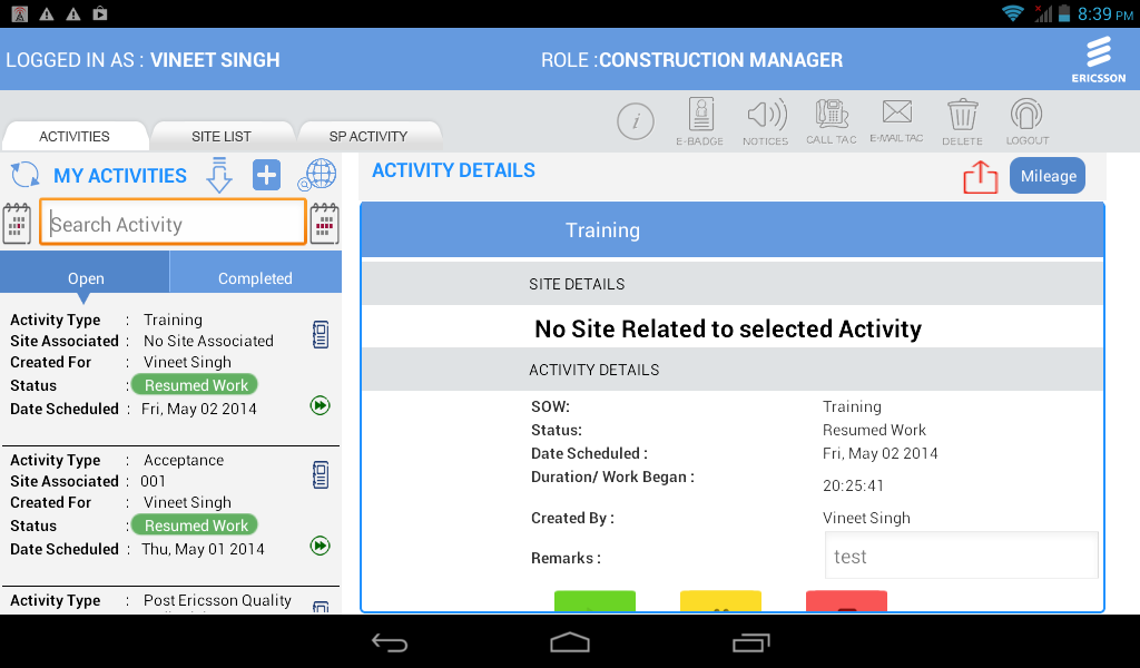 Ericsson Activity Management System. (For authorized Ericsson NBSS apps users.)