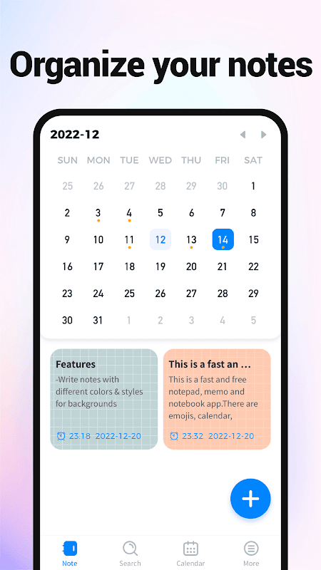 Dit is een snelle en gratis kladblok-, memo- en notitieboek-app. Er zijn emoji's, kalender, notitievergrendeling, etc. om uw notitie eenvoudig te beheren. U kunt uw notities gemakkelijk bekijken met de notitiewidget. Trouwens, dit is ook een mooie en eenvoudige app voor het maken van notities. U kunt aantekeningen maken of een takenlijst maken met kleurrijke achtergronden en prachtige lettertypekeuzes (grootte, stijl en kleur).