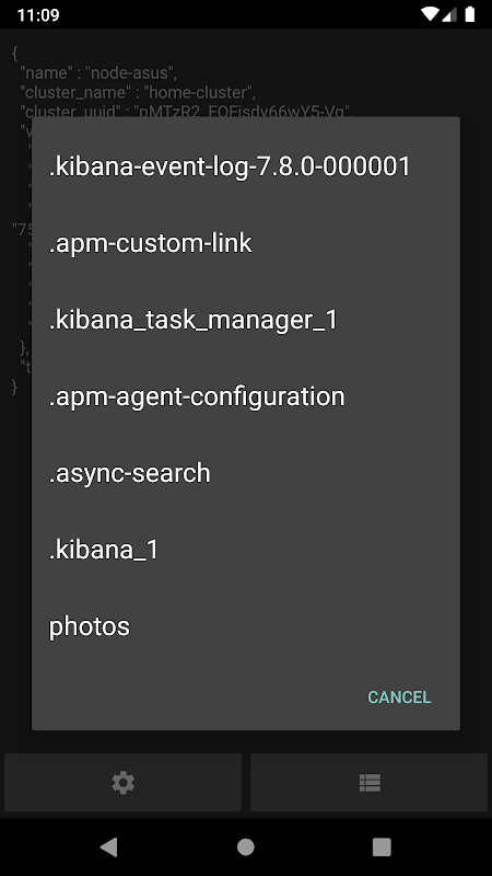 The app easily check the ES instance status, lists the indices, and allows to check the index content