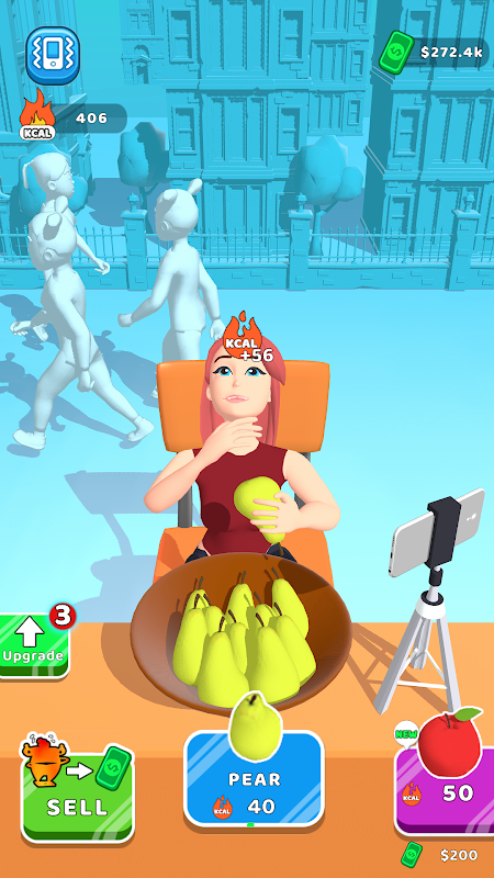 Eet voedsel om calorieën te verzamelen en verkoop het vervolgens om geld te verdienen. Ontgrendel meer voedsel en eet meer.
