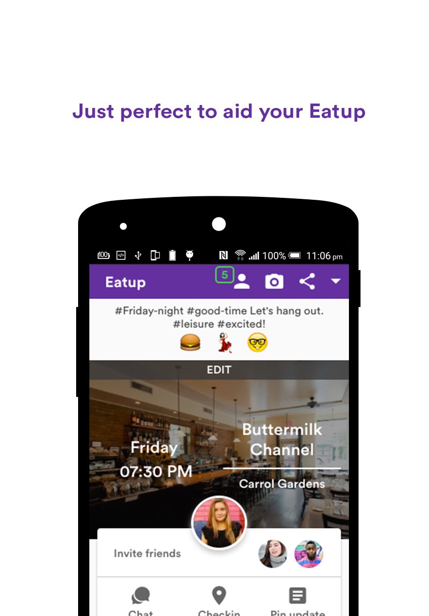 EatUp is a platform that helps you explore places to eat with people around you, including your friends!