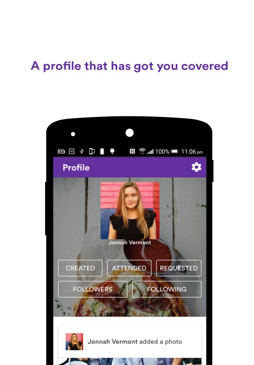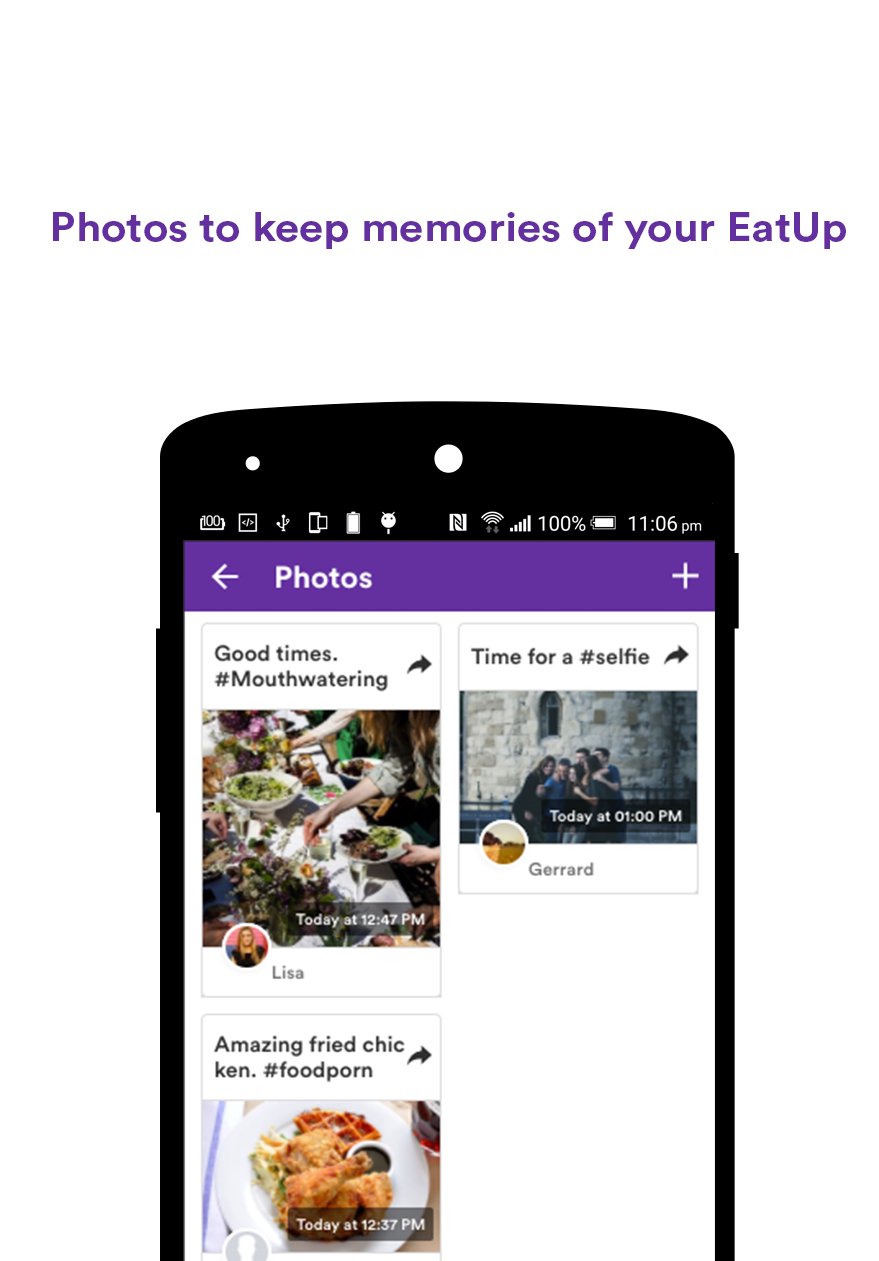 3. A private chat group, photo gallery, timeline and feed for your Eatup group.