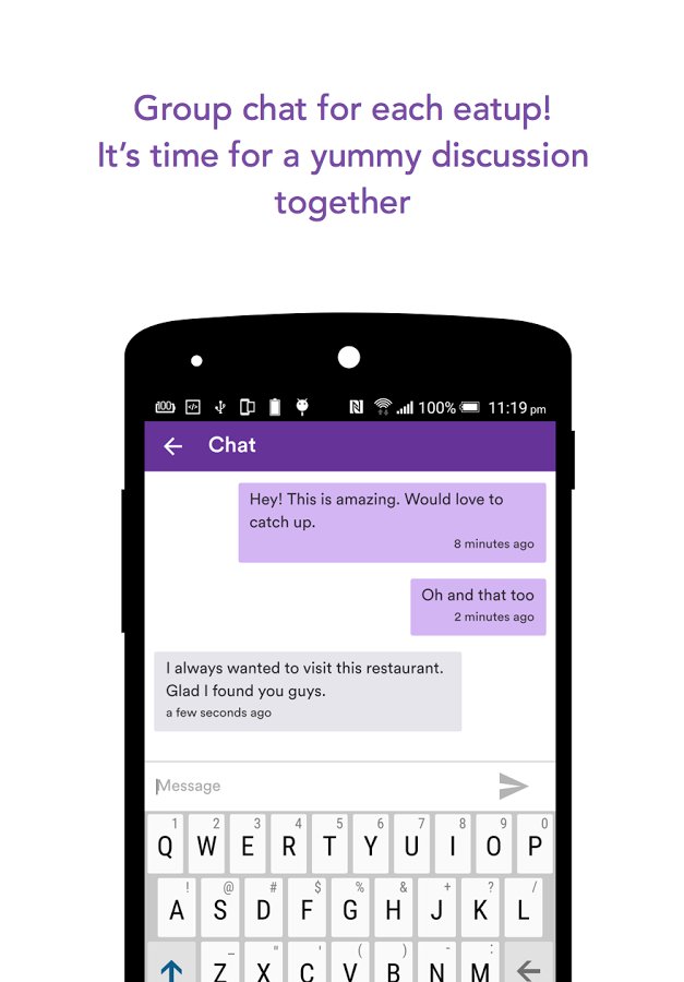 We show you cool, warm and welcoming people just like you in EatUps around you based on your interest in a particular cuisine or a restaurant or people with same interests by tagging via hash-tags and emojis :)