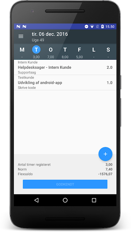App voor het melden van de tijd het verbruik, kilometers en kosten.