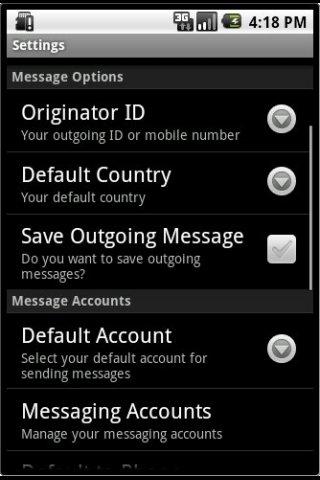 ★ Option to default to the phone when message sending via a Web2SMS provider fails.