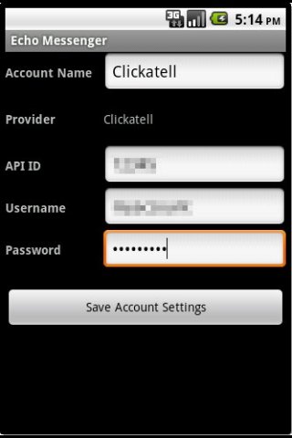 PLEASE NOTE: You will need to set up an account with a provider separately and register them with Echo Messenger. Upon initial install the phone is used as the default SMS sending account.