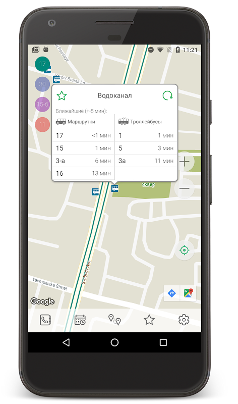 - de mogelijkheid om de dichtstbijzijnde trolleybussen en minibussen bij de geselecteerde halte te bekijken;