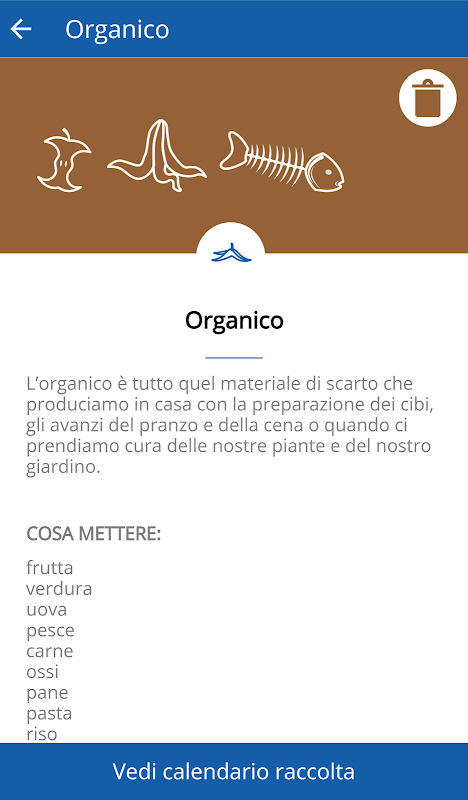 De app biedt de gebruiker een reeks functies waarmee het mogelijk is om meer te weten te komen over de bezorgmethoden van afval, maar het is ook een handig hulpmiddel om rapporten en ophaalverzoeken aan huis te verzenden, de openingstijden en dagen van de ophaling te kennen, aan te passen meldingen en vele andere functies.