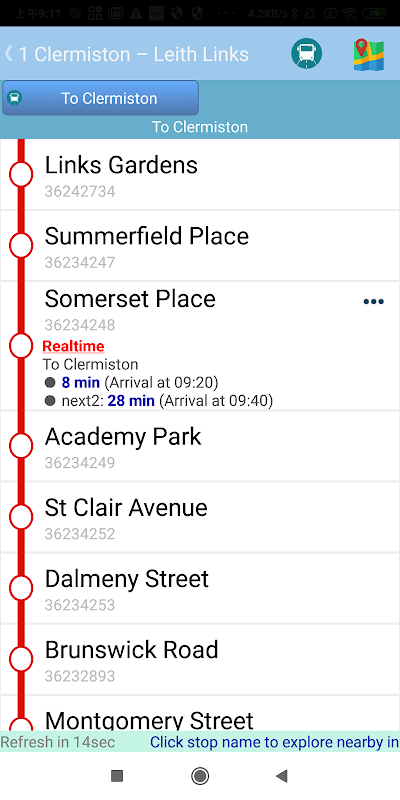 Realtime bus volgen in Edinburgh City, POI zoeken in de buurt, richtingplanning