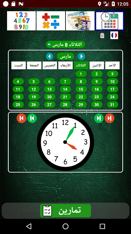 ملحق الحساب يشمل طاولات الحساب، التعامل مع النقود و قراءة الساعة و المدكرةـ