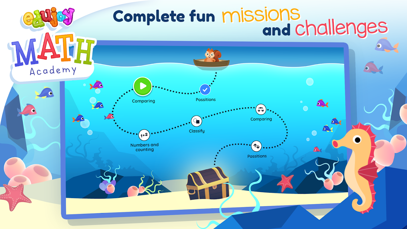 Edujoy Math Academy biedt je de meest educatieve app voor kinderen om op een leuke manier wiskunde te leren, met een methode die is getest door experts in het onderwijs.