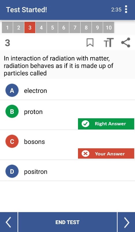 This online Multiple choice questions (MCQ) quiz application offers features like: