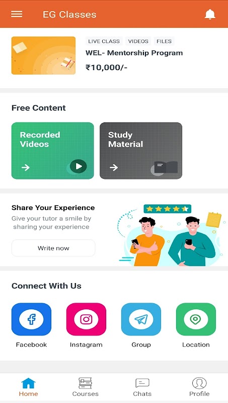 De EG Classes-app biedt aspiranten een online coachingplatform.