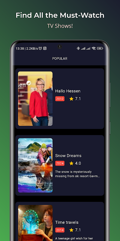 De app biedt uitgebreide details over elke show, waaronder een synopsis, castinformatie, recensies en kijkersbeoordelingen. Het biedt diepgaande gegevens waarmee u kunt beslissen wat u vervolgens wilt bekijken, of u nu geïnteresseerd bent in de nieuwste releases of tijdloze klassiekers.