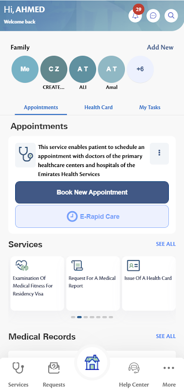 De EHS-app biedt veilige toegang tot verschillende patiëntendiensten, d.w.z. het boeken van een afspraak, het aanvragen van een medisch rapport, het verstrekken van medicijnen, mobiele thuiszorg, wachtrijbeheer, het aanvragen van bloeddonaties. De applicatie maakt gebruik van een volledige integratie met onze informatiesystemen voor de gezondheidszorg, d.w.z. WARED, dat de medische faciliteiten van EHS centraal verbindt om tegemoet te komen aan de behoeften van gebruikers en om up-to-date medische dossiers en klinische informatie te verkrijgen. App-gebruikers kunnen ook integreren met hun draagbare apparaten om de basisfuncties te verkrijgen.