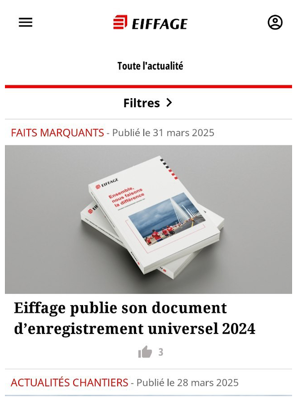 Mobiele applicatie om het nieuws van de Eiffage Groep te volgen