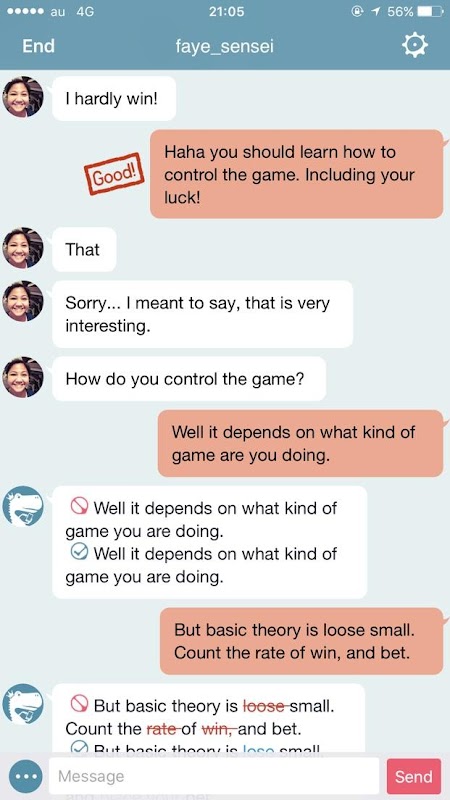 ・Get a GOOD! Stamp and level up when you use grammatically correct English.