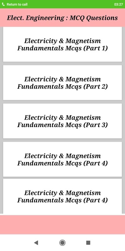 Electrical Engineering MCQs is a free app that helps to prepare for your Electrical Engineering exams( Pspcl, SSC JE, RRB JE ). This app has 1000+ multiple choice questions on different topics and it is a quick revision and reference to the important topics and you can prepare on the go!