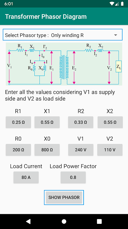 Deze app toont verschillende soorten grafieken en diagrammen die worden gebruikt in elektrotechniek. App tekent een echte schaalversie van daadwerkelijke fasors en diagrammen van elektrische machines volgens de gegevensinvoer die door de gebruiker is gegeven.