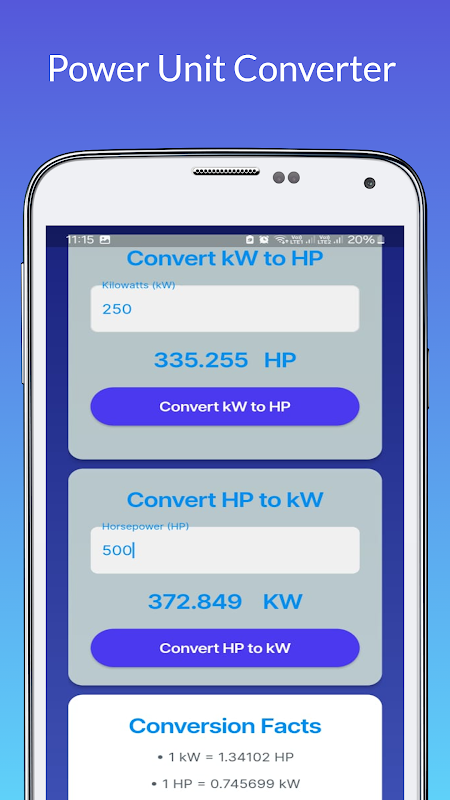 Eenvoudig conversietool om te schakelen tussen kilowatt en pk.