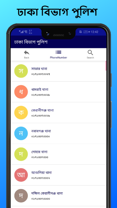 এপ এ রয়েছে বাংলাদেশের ৬৪ টি জেলার সমস্ত থানার জরুরি মোবাইল নাম্বার।