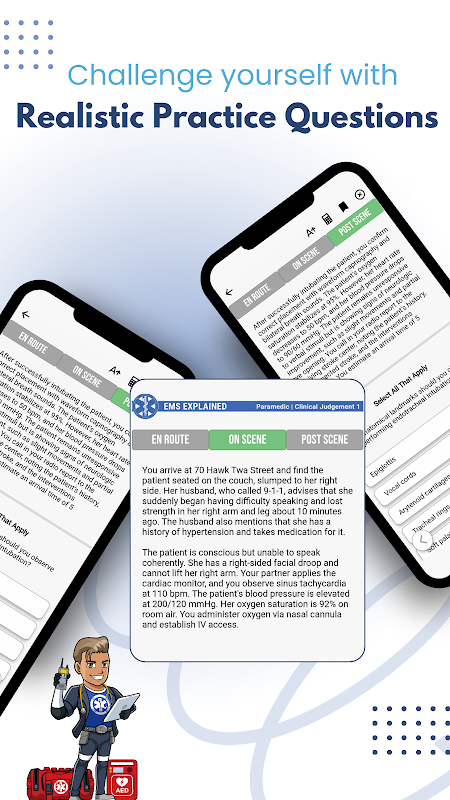 Breng uw pad naar EMS-succes in kaart met EMS Explored, een allesomvattend studiehulpmiddel gemaakt voor EMR-, EMT-, paramedicus-, Critical Care Paramedic- en Flight Paramedic-studenten, evenals voor degenen die NYC REMAC-paramedicus willen worden. Onze app fungeert als uw strategische bondgenoot voor het afleggen van een reeks EMS-examens, waaronder staatsspecifieke, NREMT, Paramedic en NYC REMAC, samen met gerichte studieondersteuning voor BLS-, ACLS- en PALS-examens van de American Heart Association.