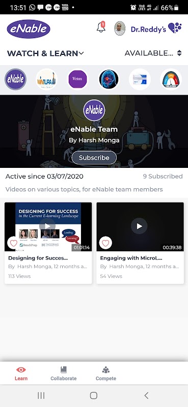 eNable - Dr Reddys Sales Training afdeling leerapp.