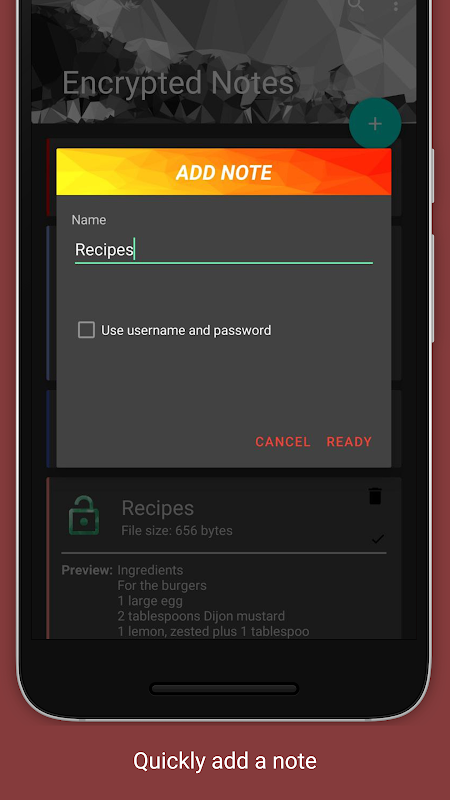 Deze app biedt een gemakkelijke manier om uw aantekeningen te beschermen. U kunt voor elke afzonderlijke notitie afzonderlijk kiezen om deze te vergrendelen met een wachtwoord, vingerafdruk of om deze ontgrendeld te houden.