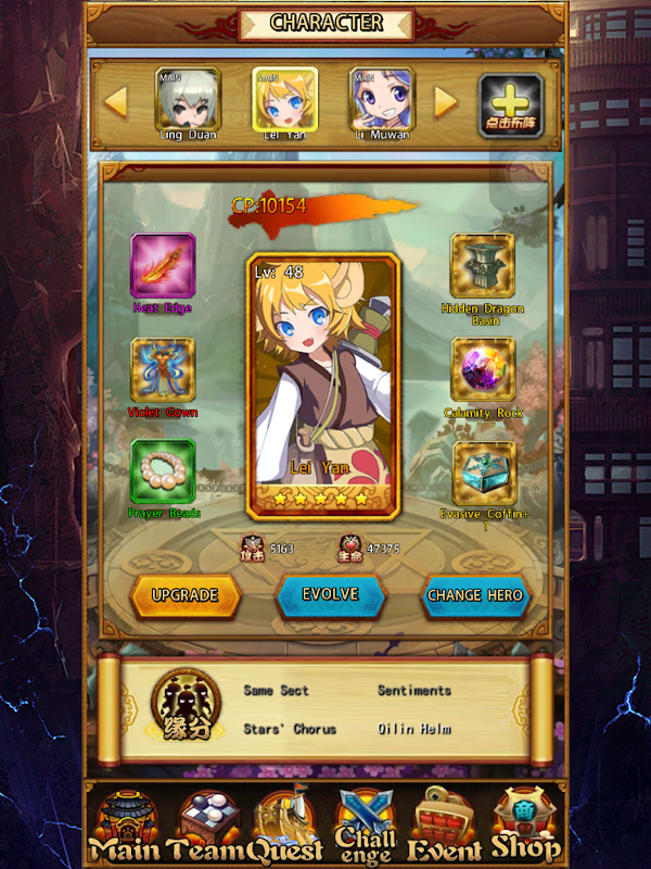 Complicated Relationships, Easy Automated Fight Sequences Creating a powerful lineup of heroes in your team is no simple matter however; the characters in Endless Evolution have complicated relationships. Some characters will work well together while others will not get along. A lot of consideration is in order to form the ultimate team – a team of all powerful heroes does not ensure success if they do not have a good relationship with each other.