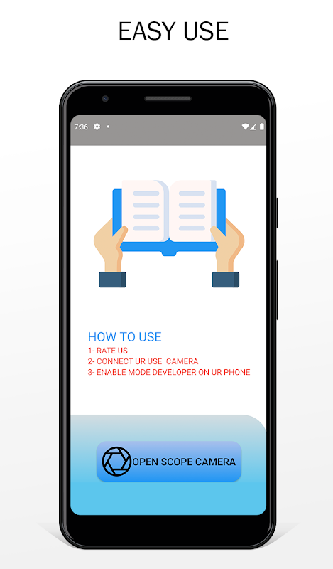Endoscope Camera-app een app om verbinding te maken met een endoscoopcamera, webcamtest of een ander apparaat zoals een USB-camera of Borescope-camera. Er zijn veel apparaten die een externe camera gebruiken, zoals inspectiecamerariool.