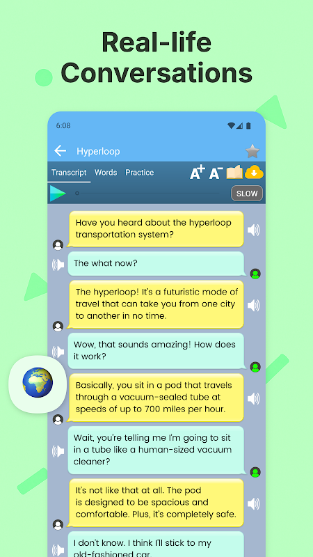 Verbeter je Engelse spreekvaardigheid en breid je woordenschat uit met leuke dialogen in onze app.