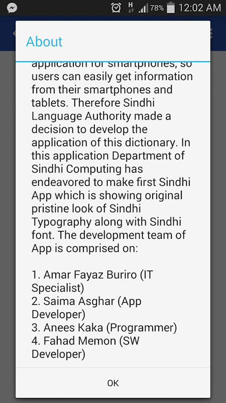 This is mobile dictionary published and developed by Sindhi Language Authority, Sindh Pakistan.
