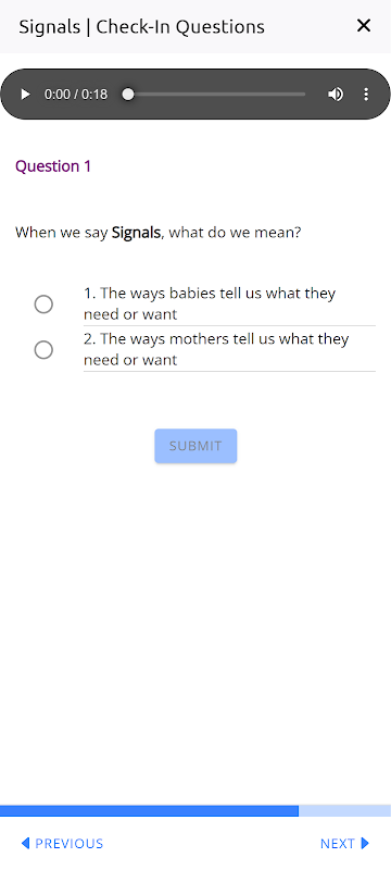 Onderzoek heeft aangetoond dat vroeg ouderlijk gedrag, zoals reactievermogen van de moeder, warmte en negativiteit, in verband wordt gebracht met de sociale ontwikkeling en geestelijke gezondheid van baby's. Het PALS-programma is gebruikt om positieve ouder-baby-interacties te vergroten. Moeders die PALS ontvingen (versus vergelijkingsmoeders) vertoonden een significante toename van meervoudig responsief gedrag dat de groei van baby's in sociale, emotionele, communicatieve en cognitieve competentie bevordert.